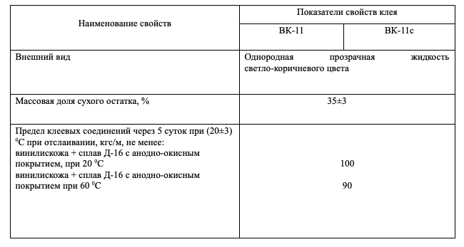 Клеи ВК-11, ВК-11с представляют собой композиции холодного отверждения. Клей ВК-11 поставляется в 3 компонентах: компонент 1- полиэфир 24К; компонент 2 - смола ПСХ-ЛС; компонент 3 – продукт 102Т. Клей ВК-11с поставляется в 4 компонентах: компонент 1- полиэфир 24К; компонент 2 - смола ПСХ-ЛС; компонент 3 – продукт 102Т, 4 компонент – трехокись сурьмы. Смешивание компонентов клеев необходимо производить на месте потребления непосредственно перед применением вследствие их ограниченной жизнеспособности.