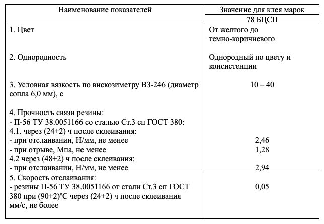 Клей 78 БЦСП предназначен для склеивания холодным способом резин (в том числе и губчатых) с металлом (в том числе и окрашенным), деревом, стеклом и другими поверхностями, а также для склеивания резины с резиной.